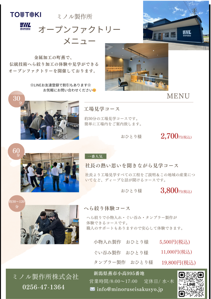 弊社ではオープンファクトリーメニューをリニューアルいたしました。
